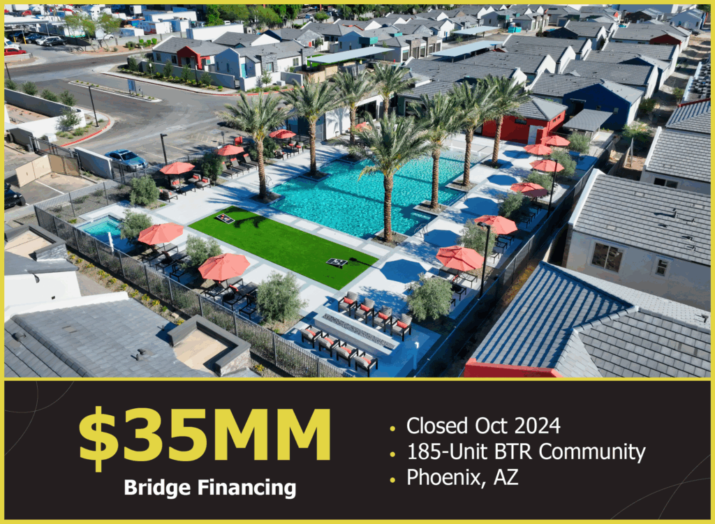 In October 2024, WAY Capital closed a $35 million senior bridge loan for Moderne at Roosevelt, a 185-unit build-to-rent community in Phoenix, AZ.